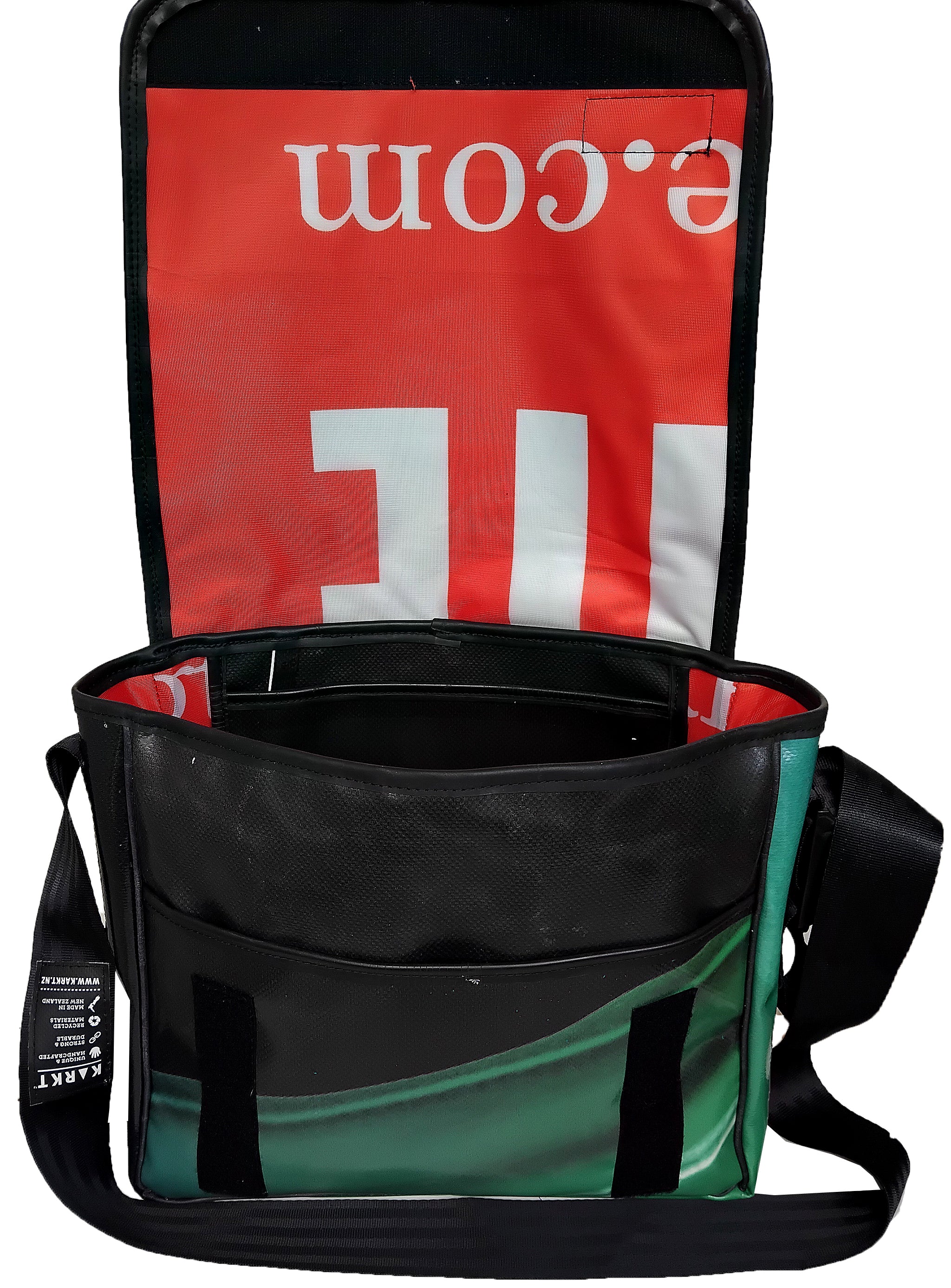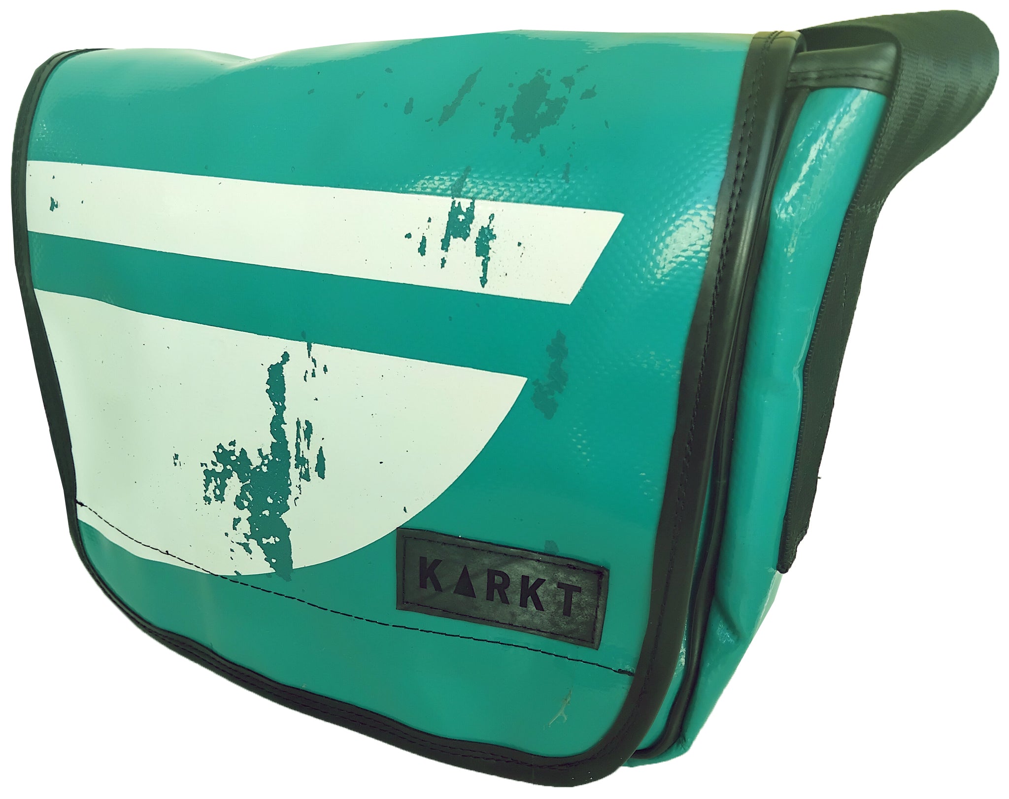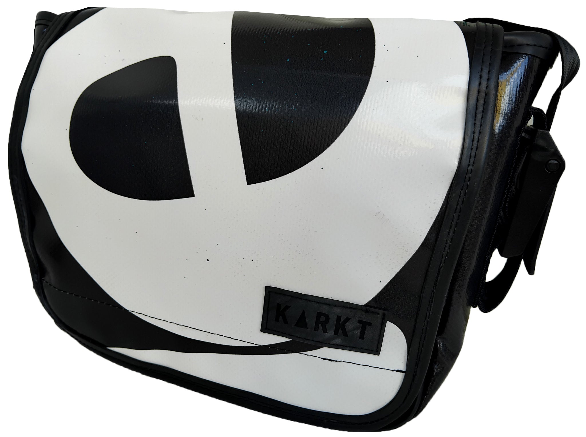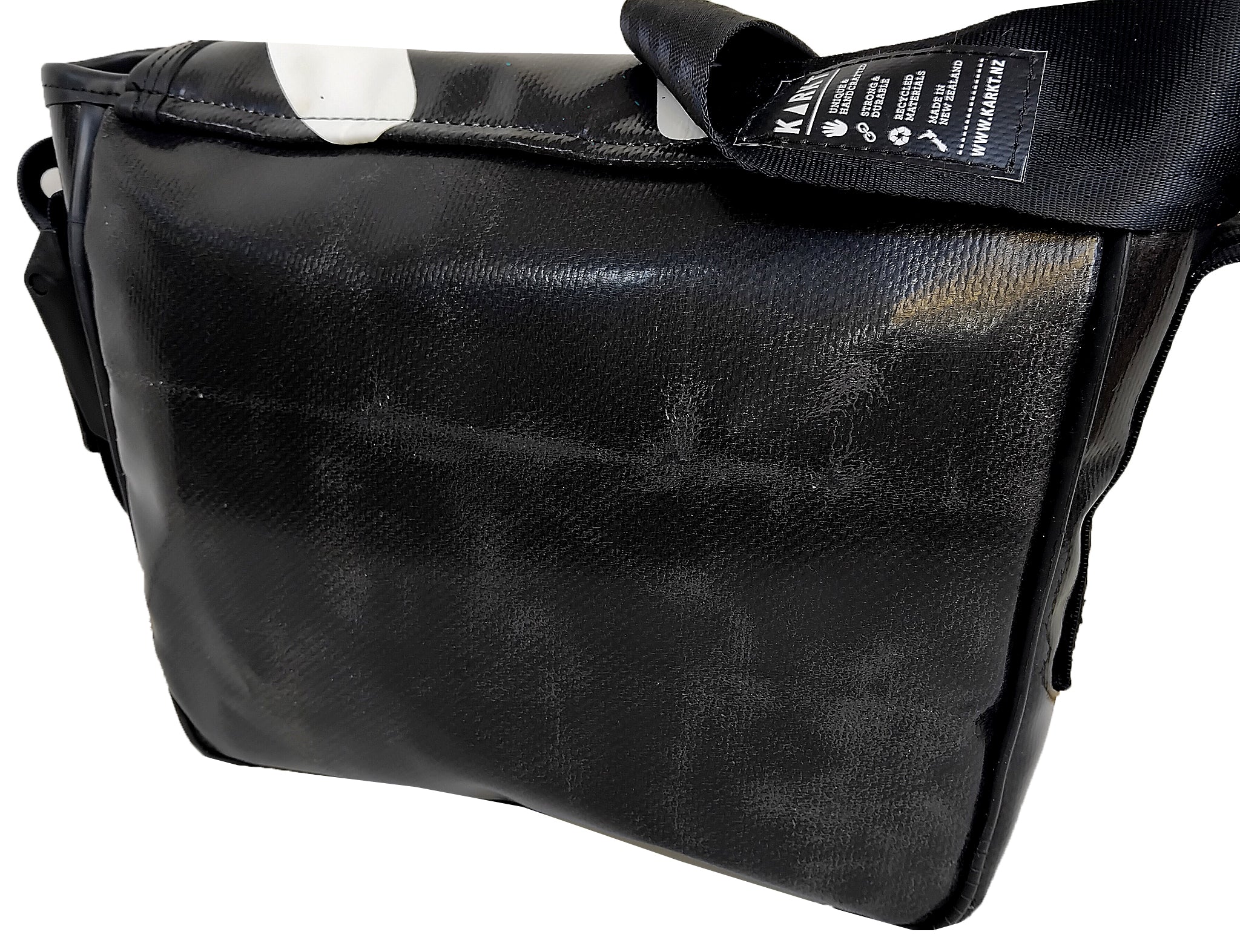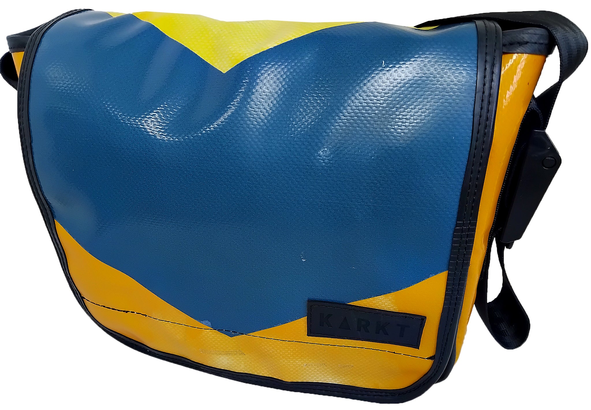 Please note this bag is made from a tarp material similar and slightly lighter in weight than a truck curtain. Recycled from an awesome event banner! Our recycled ‘Kenny’ is...