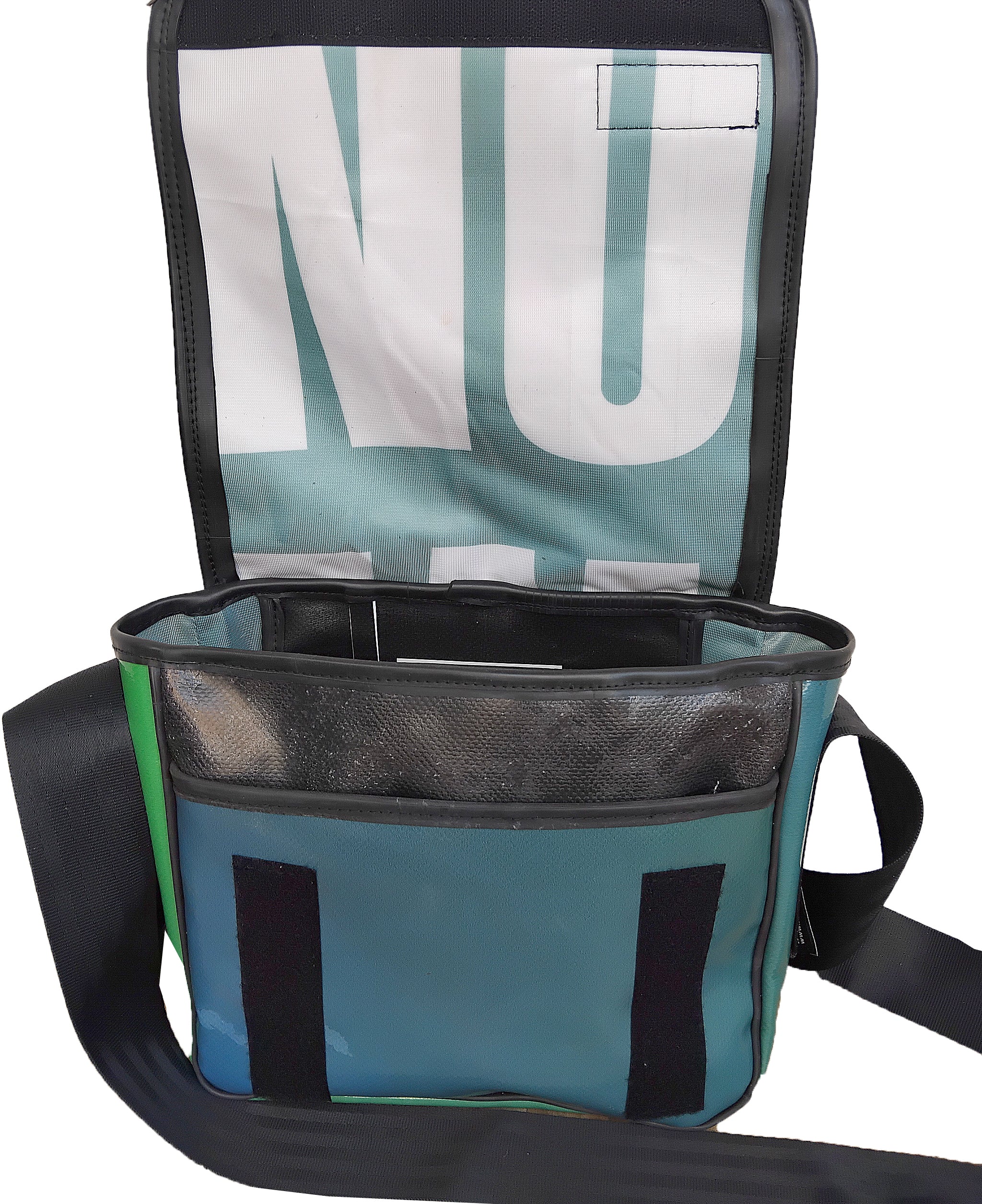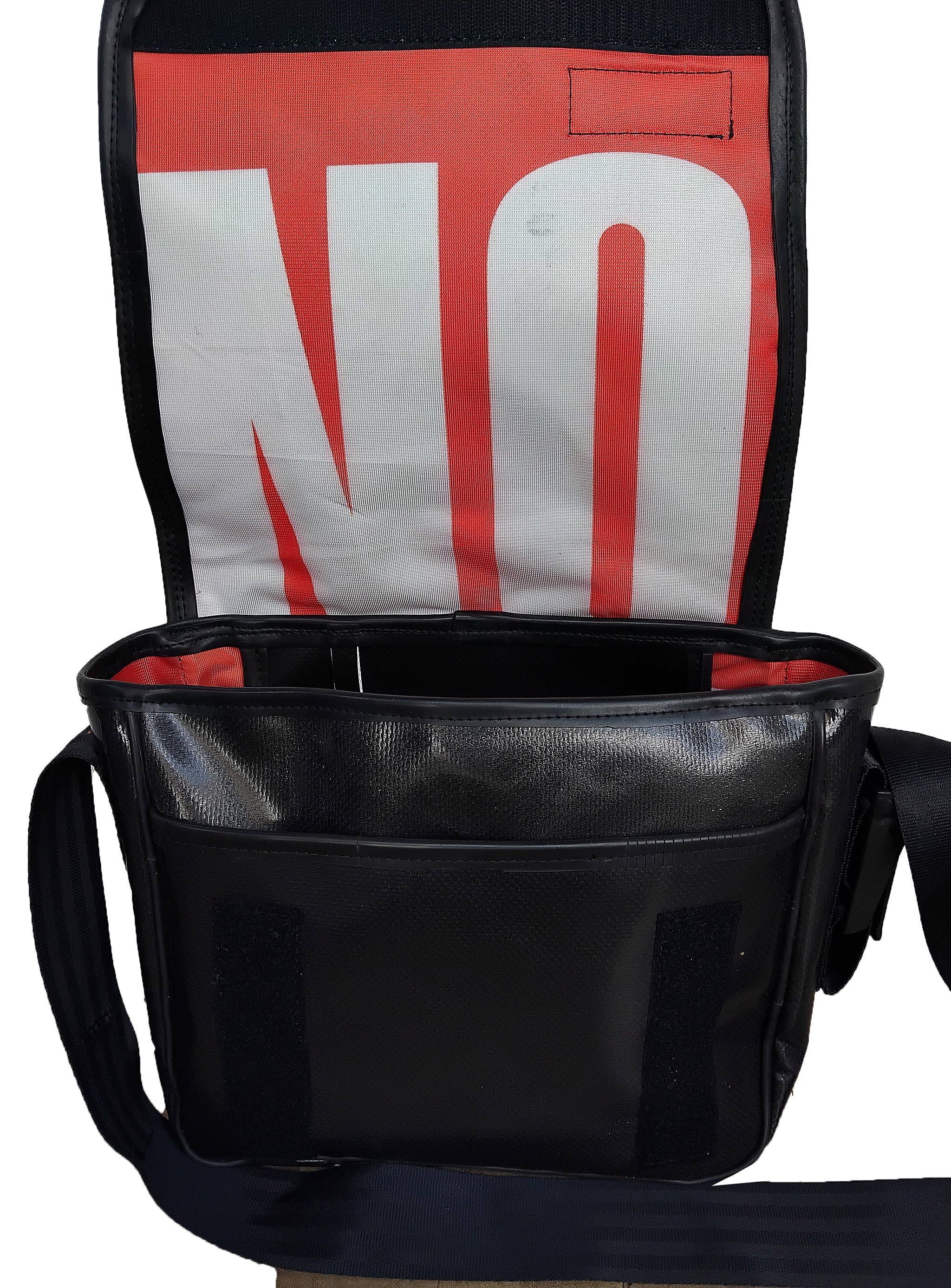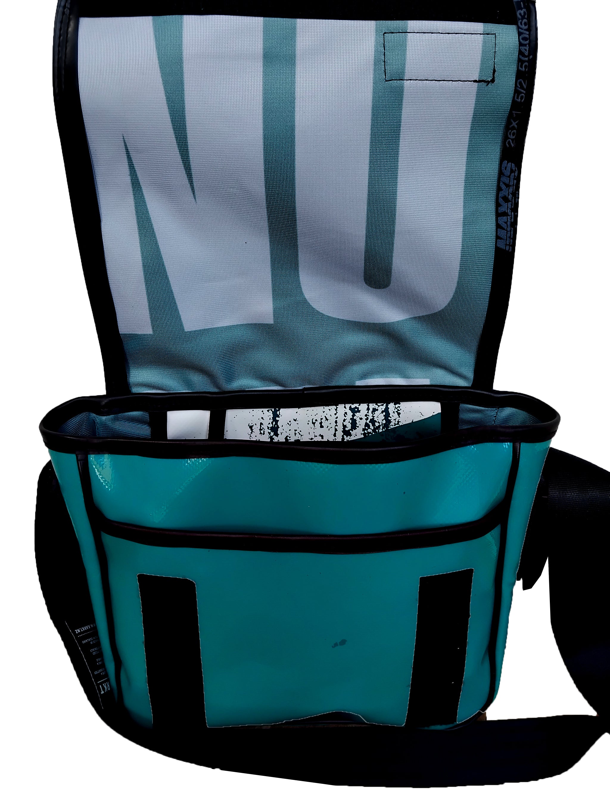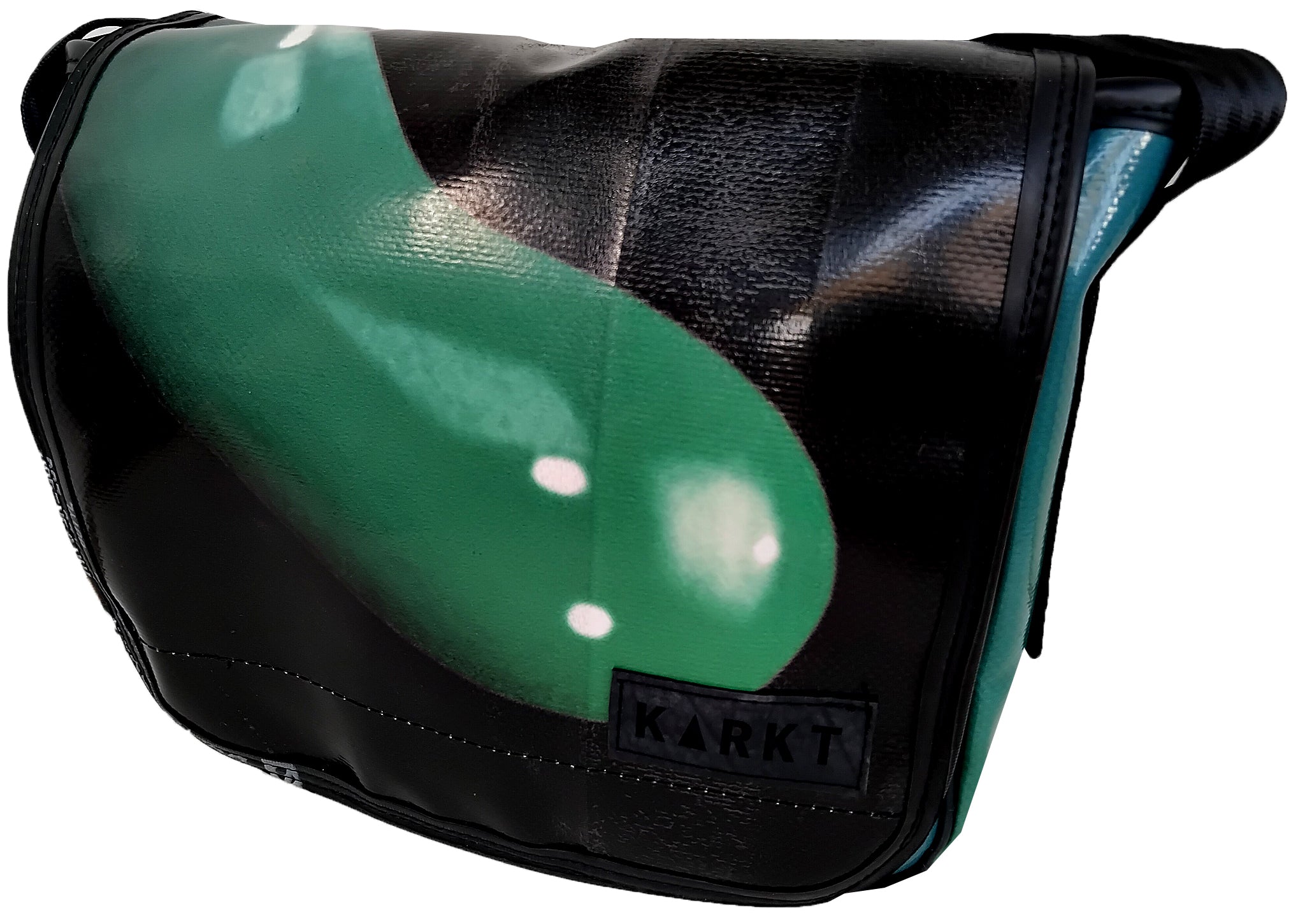 Please note this bag is made from a tarp material similar and slightly lighter in weight than a truck curtain. Recycled from an awesome event banner! Our recycled ‘Kenny’ is...