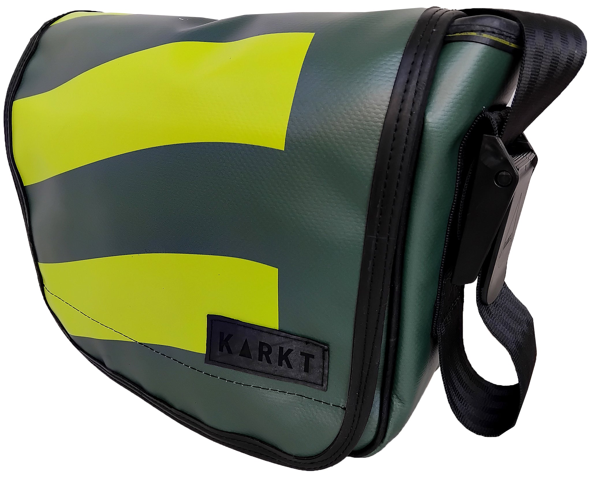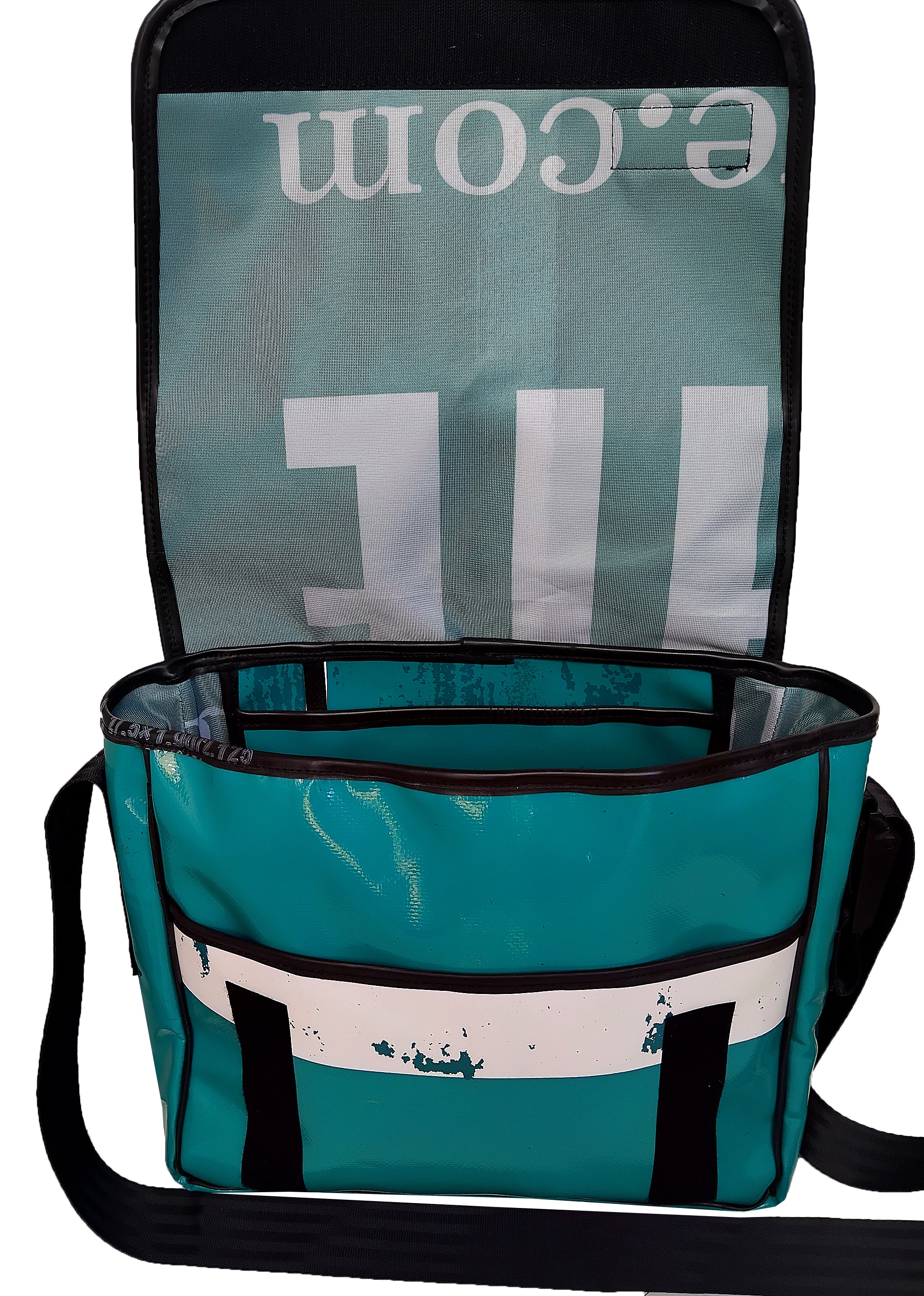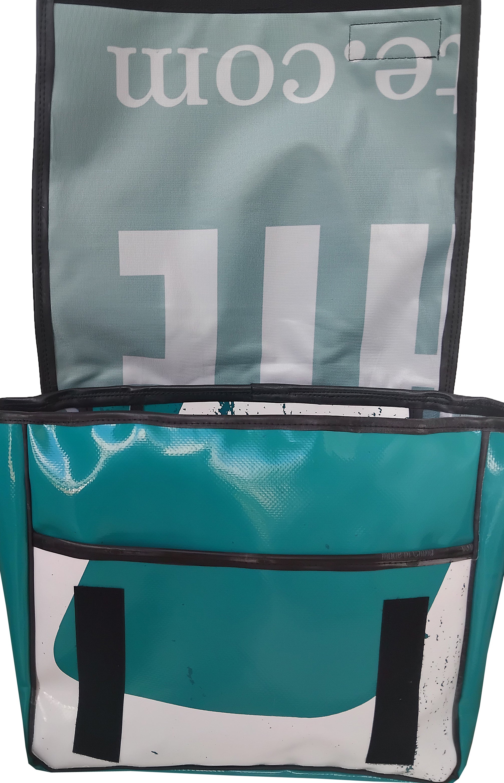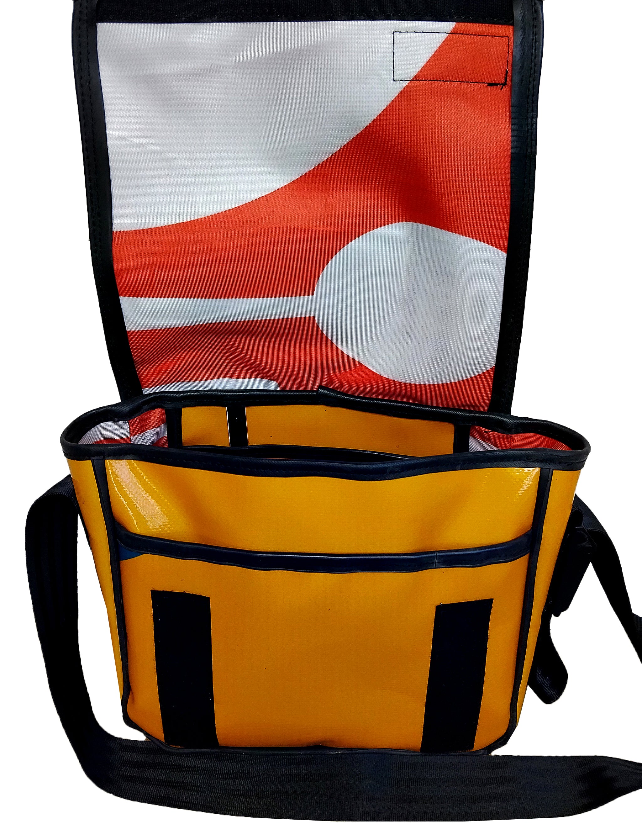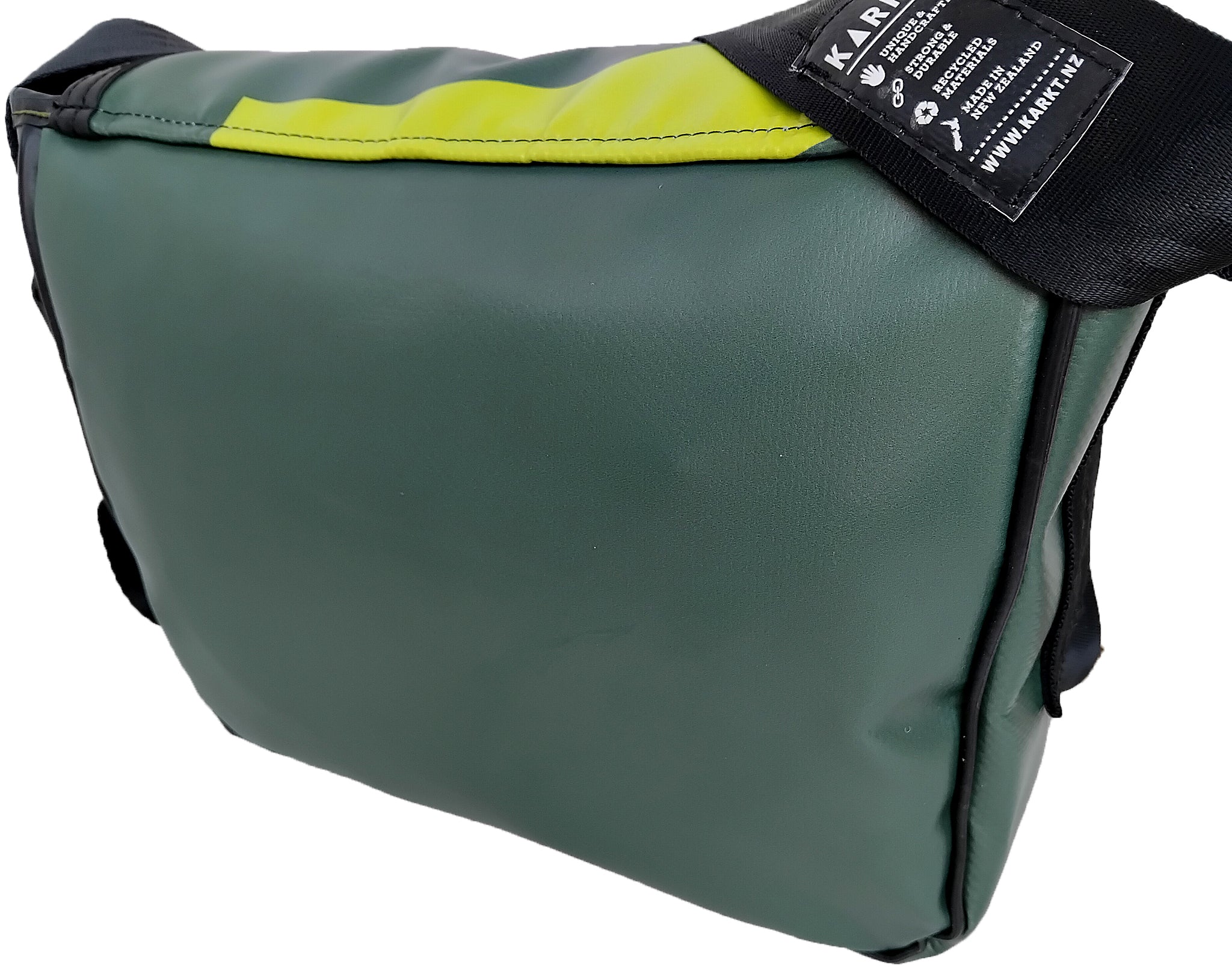 Please note this bag is made from a tarp material similar and slightly lighter in weight than a truck curtain. Recycled from an awesome event banner! Our recycled ‘Kenny’ is...